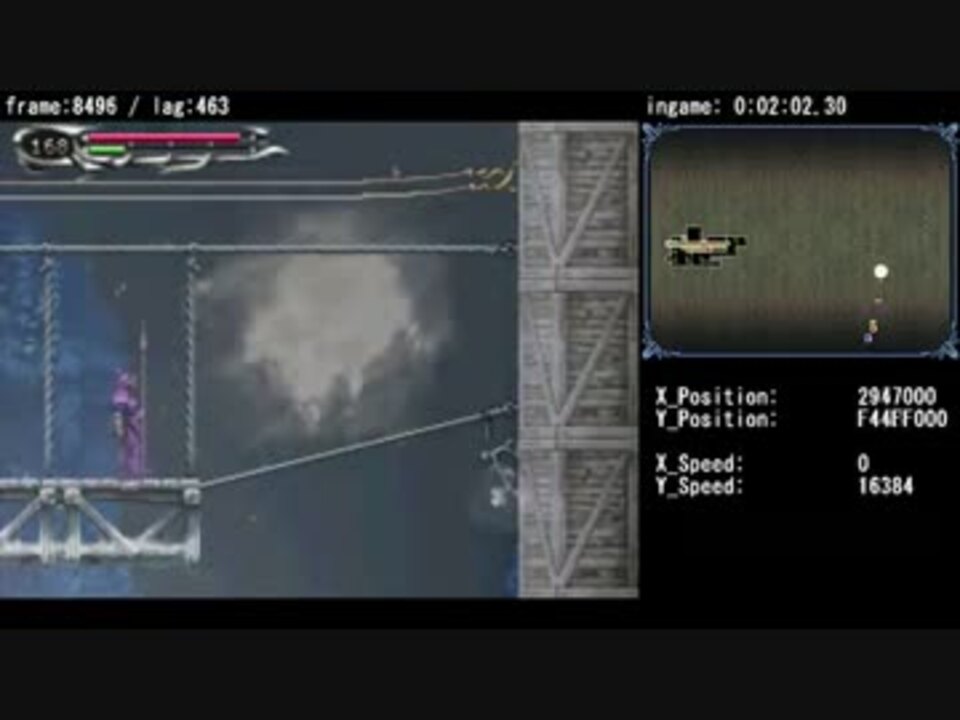 <a href="https://www.nicovideo.jp/watch/sm20419762" class="watch">sm20419762</a>の更新版です。<br /><br /><br />総フレーム数14648f(4:04.84)/追記回数3401回 <br />前回記録より1944フレーム(33秒くらい)速いです。<br /><br />新たな画面切り替え箇所発見による更新です。<br />この箇所は通常なら往来不可能ですが、内部的に画面切り替え判定があるようです。<br />この場所を利用して前回より早い段階で壁抜けを開始しています。<br /><br />壁抜け箇所の問題で経験値を余計に取得する必要性が出てきています。この経験値をエントランスへの通路付近で貯めていますが、もう少し良い経験値取得場所があるかもしれません。<br />DSM(DeSmuME0.9.8 r4382専用Advanced Bus Level Timing off)→<a href="http://bit.ly/ZXEj30" target="_blank" rel="noopener nofollow">http://bit.ly/ZXEj30</a> <br />うp主製作のTAS→<a href="https://www.nicovideo.jp/mylist/32117320" target="_blank" rel="noopener">mylist/32117320</a>