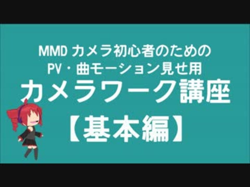 配布されてるモーションをダウンロードしたのでカッコイイPV風動画を作りたい!<br /><br />そんな方のためのカメラワーク講座です。<br />【基本編】←イマココ!<br />【応用編】<a href="https://www.nicovideo.jp/watch/sm20483871" class="watch">sm20483871</a><br /><br />良かれと思ってBGMをしっとりピアノにしたら<br />思いの外、物悲しく眠たい講座になってしまったのでご了承ください<br /><br /><br />お借りしたもの<br />モデル:あぴミク改変重音テト リュヒルド(ryuu)ステージ:<a href="https://www.nicovideo.jp/watch/sm20380420" class="watch">sm20380420</a><br />BGM:<a href="https://www.nicovideo.jp/watch/sm17228339" class="watch">sm17228339</a><br />BGM:<a href="https://www.nicovideo.jp/watch/nm19557094" class="watch">nm19557094</a><br /><br />いままでうpしもたの→<a href="https://www.nicovideo.jp/mylist/5468751" target="_blank" rel="noopener">mylist/5468751</a>