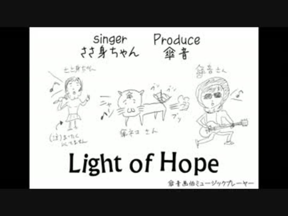 <br />まいど、傘音やで(・∀・)<br /><br /><font size="3">希望の光</font><br /><br />Produce : 傘音 [ボカロ曲 <a href="https://www.nicovideo.jp/mylist/30039626" target="_blank" rel="noopener">mylist/30039626</a>] @kasane333<br />ボーカロイド 1st Album「13ROCK」<br />クロスフェード → <a href="https://www.nicovideo.jp/watch/sm20203847" class="watch">sm20203847</a><br /><br />SING : ささ身 [<a href="https://www.nicovideo.jp/mylist/34023936" target="_blank" rel="noopener">mylist/34023936</a>]<br /><br />カラオケ → <a href="https://commons.nicovideo.jp/works/nc69085" target="_blank" rel="noopener">nc69085</a> ハモ付 → <a href="https://commons.nicovideo.jp/works/nc69086" target="_blank" rel="noopener">nc69086</a><br /><br />動画は傘音画伯の超高画力ミュージックプレーヤーにてお送りいたします♪