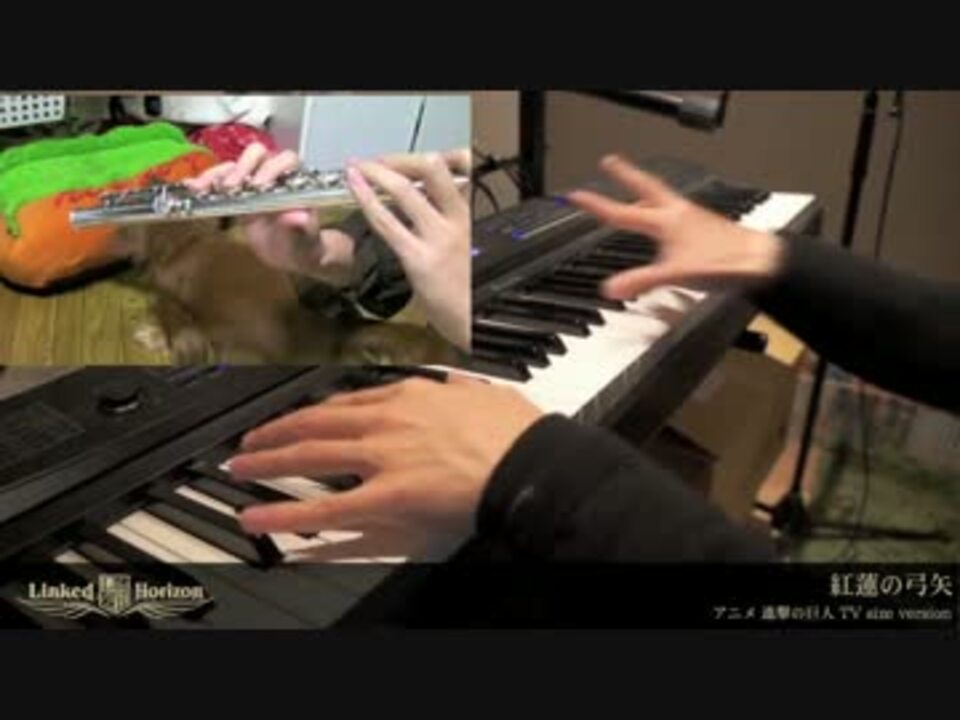 ぴえーるです。<br />Linked Horizonの紅蓮の弓矢を笛まみれで吹いてみました!<br />進撃の巨人っていうか、進撃の小型犬でした。<br />今回もこやさんのピアノ<a href="https://www.nicovideo.jp/watch/sm20608989" class="watch">sm20608989</a>に合わせてみました。<br /><br />ピアノ:こや<br />■<a href="https://www.nicovideo.jp/mylist/5993210" target="_blank" rel="noopener">mylist/5993210</a> (Sound Horizonピアノアレンジ)<br />■<a href="https://www.nicovideo.jp/mylist/10359478" target="_blank" rel="noopener">mylist/10359478</a> (いろいろピアノアレンジ)<br /><br />Twitter: @entropiajp<br />コミュ→ co1139600<br /><br /><br />ピッコロ・フルート:ぴえーる<br />■<a href="https://www.nicovideo.jp/mylist/7352905" target="_blank" rel="noopener">mylist/7352905</a><br />■<a href="https://www.nicovideo.jp/mylist/2994133" target="_blank" rel="noopener">mylist/2994133</a>(Sound Horizon)<br />■<a href="https://www.nicovideo.jp/mylist/12842503" target="_blank" rel="noopener">mylist/12842503</a>(サンホラコラボ)<br />■<a href="https://www.nicovideo.jp/mylist/34544070" target="_blank" rel="noopener">mylist/34544070</a>(LinkedHorizon)<br /><br />Twitter:@pierre_flute<br />コミュ→co451586<br /><br />ぴえーるフルートMini Album『風と笛、啼く処』<br />iTunes、Amazon mp3などにて配信中!<br />特設サイト→<a href="http://kazehue.g-flat.com/" target="_blank" rel="noopener nofollow">http://kazehue.g-flat.com/</a><br />クロスフェード→<a href="https://www.nicovideo.jp/watch/sm23472384" class="watch">sm23472384</a>