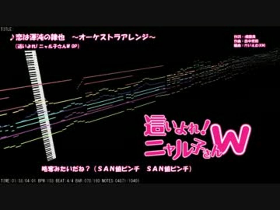 本日が発売日!・・・オーケストラアレンジのフルを完成させました!(発売日ピッタリな投稿時刻に注目←)<br />恋は渾沌の隷也(「這いよれ!ニャル子さんW」OP)※ボーカル入りです<br /><br />今回、1期OPの旋律を裏メロとして間奏とサビに入れてみました。<br /><br />ボーカル無しのFull音源→<a href="https://www.nicovideo.jp/watch/sm20682053" class="watch">sm20682053</a><br />初版(TVサイズ)→<a href="https://www.nicovideo.jp/watch/sm20399031" class="watch">sm20399031</a><br /><br />鍵盤画面:MIDITrail <a href="http://sourceforge.jp/projects/miditrail/" target="_blank" rel="noopener nofollow">http://sourceforge.jp/projects/miditrail/</a><br /><br />這いよれ!ニャル子さんW ニコニコチャンネル <a href="http://ch.nicovideo.jp/nyaruko-w" target="_blank" rel="noopener nofollow">http://ch.nicovideo.jp/nyaruko-w</a><br /><br />けいえむ(K.M)投稿動画マイリスト:/<a href="https://www.nicovideo.jp/mylist/2802962" target="_blank" rel="noopener">mylist/2802962</a>