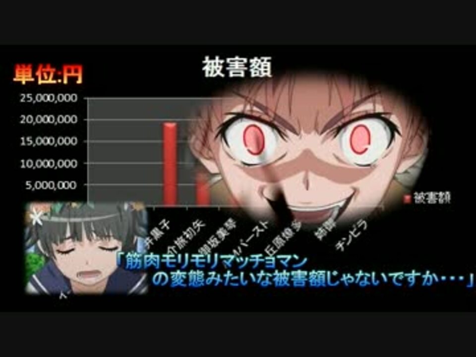 前々から気になっていたので調べてみました<br /><br />下半期(後編)⇛<a href="https://www.nicovideo.jp/watch/sm20896878" class="watch">sm20896878</a><font size="3"><font color="blue"><b><br /><br />【前シリーズ】Fate/Zero ⇛ <a href="https://www.nicovideo.jp/watch/sm18212898" class="watch">sm18212898</a> </b></font></font><br /><br /><b>被害総額シリーズ⇛<a href="https://www.nicovideo.jp/mylist/32717672" target="_blank" rel="noopener">mylist/32717672</a></b><br /><br />コメント有り難う御座います。随時投コメで補足中です<br /><br />改訂項目 <br />①警備ロボは120万円<br />②乗用車は200万円<br />③御坂はコインや缶ジュースを不正に入手<br /><br />でも、後編のせいで割とどーでもよくなる