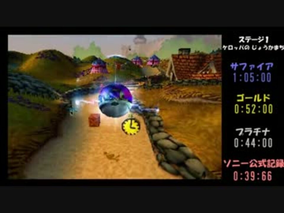 作る!と言い出して幾星霜、やっと形になりました。<br />ゲーム内タイムを最優先とした動画です。<br />参考タイムだけ記載してみました。<s>ホントは内部情報も表示したかったのですが途中で挫折して</s><br /><b>注意書き</b><br />現在クラッシュ3はpsxjin上での描画が不完全である為、当動画では描画が内容に大きく影響を及ぼすステージは独断で飛ばさせて頂きます。<br /><br />ステージ1 ケロッパの城下町<br />ステージ3 万里の超特急 <a href="#" class="seekTime" data-seekTime="1:37" onclick="seekNicoPlayer('#1:37'); return false;">#1:37</a><br />ステージ4 どたばたジュラシック沼 <a href="#" class="seekTime" data-seekTime="2:52" onclick="seekNicoPlayer('#2:52'); return false;">#2:52</a><br />ステージ5 海賊島を目指せ! <a href="#" class="seekTime" data-seekTime="4:12" onclick="seekNicoPlayer('#4:12'); return false;">#4:12</a><br /><br />協力して下さった方々に感謝!追記回数 33618回(12948/4092/8924/7654)<a href="https://www.nicovideo.jp/watch/sm21171057" class="watch">sm21171057</a> <a href="https://www.nicovideo.jp/mylist/30557963" target="_blank" rel="noopener">mylist/30557963</a><br />※ステージ1のゴールド→57:00 公式→39:93 ステージ5 プラチナ53:20でした。スイマセン
