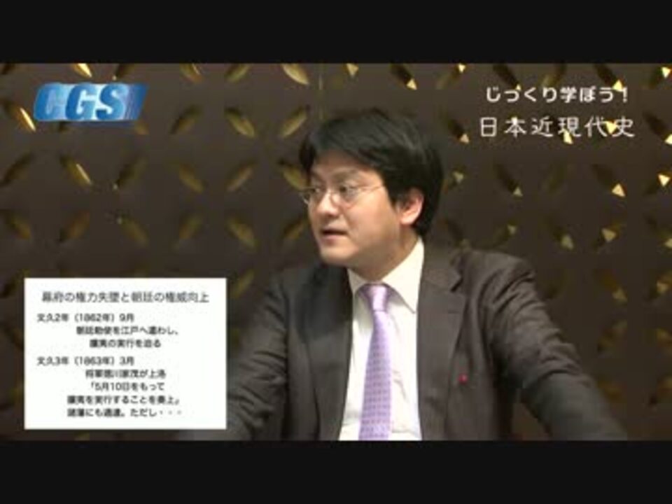 『じっくり学ぼう!日本近現代史』第4週激動の幕末へ!<br />第4話馬関戦争〜長州、大英帝国を追い返す<br />講師:憲政史家倉山満、聞き手:神谷宗幣<br />公式ブログ<a href="http://ameblo.jp/cgsinfo/" target="_blank" rel="noopener nofollow">http://ameblo.jp/cgsinfo/</a><br /><br />第4週 <a href="https://www.nicovideo.jp/mylist/37178633" target="_blank" rel="noopener">mylist/37178633</a> 第3週 <a href="https://www.nicovideo.jp/mylist/37097043" target="_blank" rel="noopener">mylist/37097043</a> <br />第2週 <a href="https://www.nicovideo.jp/mylist/37011686" target="_blank" rel="noopener">mylist/37011686</a> 第1週 <a href="https://www.nicovideo.jp/mylist/36865837" target="_blank" rel="noopener">mylist/36865837</a><br /><br />今週は、歴史が大きく動き始めた、幕末動乱についてお送りしています。<br />今回は、馬関戦争です。長州が4大国を敵に回して、また大英帝国と戦います。<br />戦い2回目にして、消し炭も残らないぐらいボコボコにされてしま・・・<br />うことなく!なんと大英帝国を追い払ってしまったのです!!!<br />一体何が起こったというのでしょう?<br /><br />CGS FBPage <a href="http://www.facebook.com/ChGrandStrategy" target="_blank" rel="noopener nofollow">http://www.facebook.com/ChGrandStrategy</a>