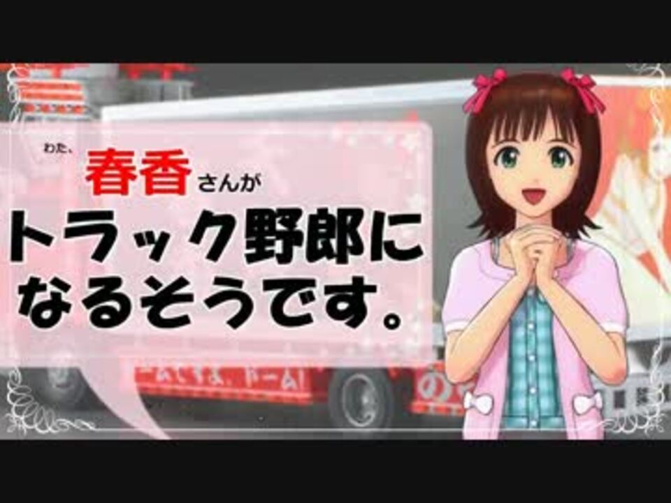 <b><font size="6">春香「律子さん。トラックですよっ、トラックっ!」</font></b><br /><br /> 律子「春香、アンタ免許は?」<br />春香「こまけぇこたry」<br /><br /><br /> 使用ゲーム → 『Euro Truck Simulator 2』PCげー。<br /><br /><br />※サムネの画像、<br />『春香のデコトラを作ってみた。』<br />からお借りしますた。→ /<a href="https://www.nicovideo.jp/watch/sm19158009" class="watch">sm19158009</a><br /><br />主の他の動画→ /<a href="https://www.nicovideo.jp/mylist/35484932" target="_blank" rel="noopener">mylist/35484932</a><br /><br />実は動画作成を急ピッチで進めたので、ほぼ初心者プレイ。<br />ちなみに主は大型の免許は持っていない。<br /><br />追記4:ドライブBGM → Tonight's Not The Night (For Goodbye)/Randy Rogers Band <br /><br />続編完成 → /<a href="https://www.nicovideo.jp/watch/sm21389796" class="watch">sm21389796</a>