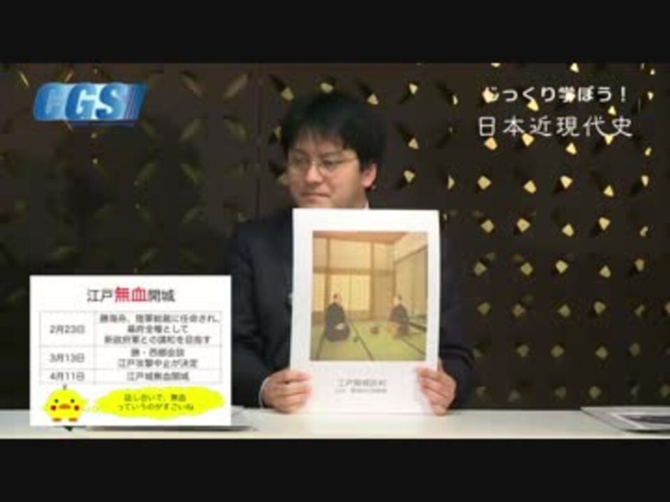 『じっくり学ぼう!日本近現代史』第5週徳川幕府の最後<br />第5話鳥羽伏見の戦い〜維新回天、なる!<br />講師:憲政史家倉山満、聞き手:神谷宗幣<br />公式ブログ(6/3・8日公開収録申し込み受付中!)<a href="http://ameblo.jp/cgsinfo/" target="_blank" rel="noopener nofollow">http://ameblo.jp/cgsinfo/</a><br /><br />第5週 <a href="https://www.nicovideo.jp/mylist/37256029" target="_blank" rel="noopener">mylist/37256029</a> 第4週 <a href="https://www.nicovideo.jp/mylist/37178633" target="_blank" rel="noopener">mylist/37178633</a><br />第3週 <a href="https://www.nicovideo.jp/mylist/37097043" target="_blank" rel="noopener">mylist/37097043</a> 第2週 <a href="https://www.nicovideo.jp/mylist/37011686" target="_blank" rel="noopener">mylist/37011686</a> 第1週 <a href="https://www.nicovideo.jp/mylist/36865837" target="_blank" rel="noopener">mylist/36865837</a><br /><br />今週のテーマは、徳川幕府の最後、です。<br />今回は、いよいよ鳥羽伏見の戦い。いよいよ、薩摩・長州と幕府が正面衝突します。<br />ついに陥落する江戸城。一体どれだけの血が流れたのでしょうか?<br />明治維新の「維新」。この言葉の元々の意味・形が明らかに!<br /><br />CGS FBPage <a href="http://www.facebook.com/ChGrandStrategy" target="_blank" rel="noopener nofollow">http://www.facebook.com/ChGrandStrategy</a>