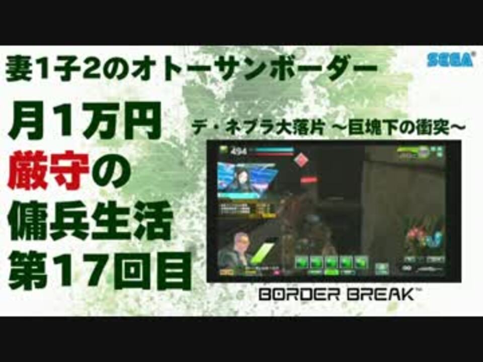 (C)SEGA<br /><br /> CN:オトーサン@月1万<br />ランク:A4(初期~ver2.0までで1度引退→復帰 過去最高ランク:A4)<br />マップ:デ・ネブラ大落片 ~巨塊下の衝突~<br />使用兵装:強襲、支援<br />アセン:動画冒頭を確認下さい<br />映像出力環境:外部出力(アナログ)<br />----<br />現在の理想としているアセン(購入計画):<a href="http://p.tl/dTR3" target="_blank" rel="noopener nofollow">http://p.tl/dTR3</a><br />投稿主が作った予算管理シート:<a href="https://www.nicovideo.jp/watch/sm20306977" class="watch">sm20306977</a><br />----<br />実況要素:字幕のみ<br />ブロマガ:<a href="https://ch.nicovideo.jp/otosan" target="_blank" rel="noopener">ch.nicovideo.jp/otosan</a><br />Twitter:<a href="http://p.tl/HeAG" target="_blank" rel="noopener nofollow">http://p.tl/HeAG</a><br />----<br />「妻1子2のオトーサンボーダー 月1万円厳守の傭兵生活」<a href="https://www.nicovideo.jp/mylist/36107271" target="_blank" rel="noopener">mylist/36107271</a><br />