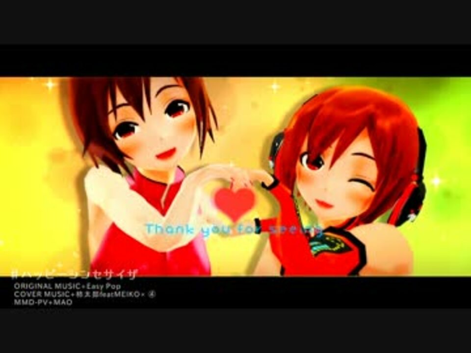 <font size=5 color=#ff282f>赤いおねえさん×④でとってもハッピーなカバー曲を電子音に乗せてお届けします!</font><br /><br />4人のMEIKOさんと5月5日MEIKOの日に集まった親衛隊2人でハッピーシンセサイザ! ( ゚∀゚)o彡゜めーちゃん!めーちゃん!<br /><font color=#7eef00>・元気になるEasy Pop様の原曲:<a href="https://www.nicovideo.jp/watch/sm12825985" class="watch">sm12825985</a></font><br /><font color=#f5b300>・MEIKO調声:柿太郎 <a href="https://www.nicovideo.jp/mylist/9224498" target="_blank" rel="noopener">mylist/9224498</a></font><br /><font color=#05a1ff>・MMD-PV:MAO <a href="https://www.nicovideo.jp/mylist/23891107" target="_blank" rel="noopener">mylist/23891107</a></font><br />その他動画製作にあたり多くのモデル・モーションお借りしています。<br />お借りした諸々は動画内にて記載。製作者の方々に精一杯の感謝を!<br /><br /><font color=#ff18c0>半角「m」で集え親衛隊!</font>