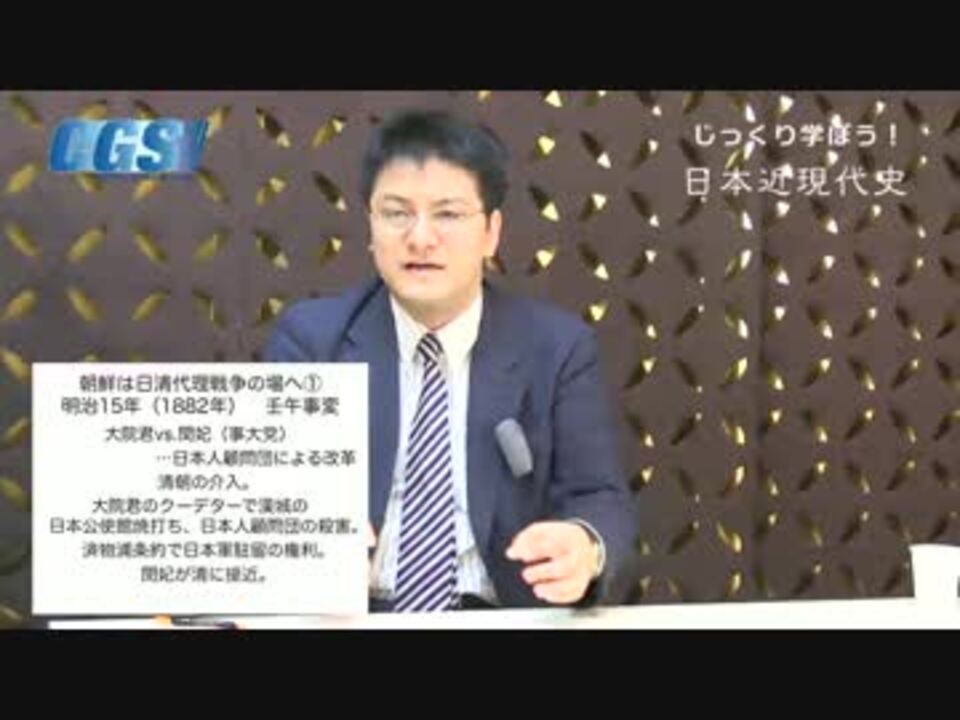 CGS公式ブログ(6/21近現代史公開収録!)<br />詳細はこちら⇒ <a href="http://ameblo.jp/cgsinfo/" target="_blank" rel="noopener nofollow">http://ameblo.jp/cgsinfo/</a><br /><br />『じっくり学ぼう!日本近現代史』第8週日清日露戦争〜大日本帝国の栄光<br />第1話脱亜論〜福沢諭吉が朝鮮人を見捨てたワケ<br />講師:憲政史家倉山満、聞き手:神谷宗幣<br /><br />第8週 <a href="https://www.nicovideo.jp/mylist/37492942" target="_blank" rel="noopener">mylist/37492942</a> 第7週 <a href="https://www.nicovideo.jp/mylist/37420004" target="_blank" rel="noopener">mylist/37420004</a><br />第6週 <a href="https://www.nicovideo.jp/mylist/37338488" target="_blank" rel="noopener">mylist/37338488</a> 第5週 <a href="https://www.nicovideo.jp/mylist/37256029" target="_blank" rel="noopener">mylist/37256029</a> <br /><br />今週は日清日露戦争。華々しく勝利を収め、世界の大国としてのし上がっていった栄光の道のりです。<br />今回は、脱亜論。朝鮮を擁護していたはずの福沢諭吉も、いつの頃からか、朝鮮をアジアの悪友とみなしています。<br />一体何が彼を変化させたのでしょうか?<br /><br />CGS FBPage <a href="http://www.facebook.com/ChGrandStrategy" target="_blank" rel="noopener nofollow">http://www.facebook.com/ChGrandStrategy</a>