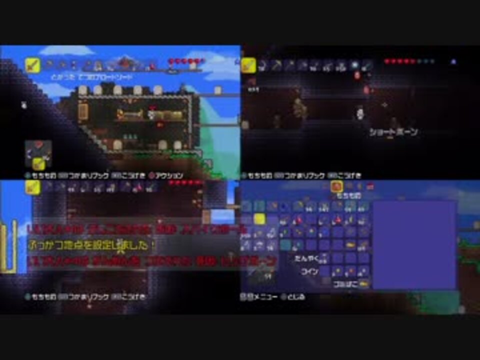 いい大人達がPS3版「テラリア」を本気で遊んでみました。<br />本人達は至って本気でプレイしておりますが、腕前の方はお察し下さい。<br /><br />なお、この動画は「テラリア先行実況プレイヤー募集企画」に参加して収録した内容となっています。<br /><br />登場人物:いつも愉快なタイチョー、いつものんびりオニーチャン<br />オニーチャンブラザー・ドムネギ、歳はみんなと同じだけどオッサン<br /><br />(ご注意!)タイチョーが絶叫している箇所が多々あります。<br /><br />PS3版テラリア公式サイト⇒<a href="http://www.spike-chunsoft.co.jp/terraria/" target="_blank" rel="noopener nofollow">http://www.spike-chunsoft.co.jp/terraria/</a><br />企画動画一覧はコチラ⇒<a href="https://www.nicovideo.jp/mylist/37059108" target="_blank" rel="noopener">mylist/37059108</a><br /><br />前→<a href="https://www.nicovideo.jp/watch/sm21138785" class="watch">sm21138785</a> 次→<a href="https://www.nicovideo.jp/watch/sm21164315" class="watch">sm21164315</a> これまでの実況→<a href="https://www.nicovideo.jp/mylist/17828031" target="_blank" rel="noopener">mylist/17828031</a> ラジオ→<a href="https://www.nicovideo.jp/mylist/28752088" target="_blank" rel="noopener">mylist/28752088</a>