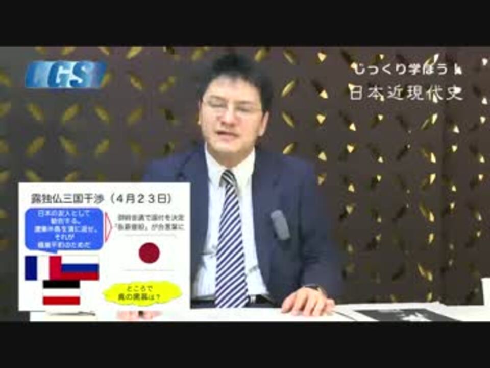 CGS公式ブログ(6/21近現代史公開収録!)<br />詳細はこちら⇒ <a href="http://ameblo.jp/cgsinfo/" target="_blank" rel="noopener nofollow">http://ameblo.jp/cgsinfo/</a><br /><br />『じっくり学ぼう!日本近現代史』第8週日清日露戦争〜大日本帝国の栄光<br />第4話三国干渉から日英同盟へ〜白人の陰謀と戦った日本<br />講師:憲政史家倉山満、聞き手:神谷宗幣<br /><br />第8週 <a href="https://www.nicovideo.jp/mylist/37492942" target="_blank" rel="noopener">mylist/37492942</a> 第7週 <a href="https://www.nicovideo.jp/mylist/37420004" target="_blank" rel="noopener">mylist/37420004</a><br />第6週 <a href="https://www.nicovideo.jp/mylist/37338488" target="_blank" rel="noopener">mylist/37338488</a> 第5週 <a href="https://www.nicovideo.jp/mylist/37256029" target="_blank" rel="noopener">mylist/37256029</a> <br /><br />今週は三国干渉から日英同盟へ。<br />なんと、「光栄ある孤立」政策をとっていた大英帝国と対等の同盟関係構築に成功します。<br />しかし、そこにいたるまでにも、東アジアの権利をめぐって、様々な争いに巻き込まれます。<br /><br />CGS FBPage <a href="http://www.facebook.com/ChGrandStrategy" target="_blank" rel="noopener nofollow">http://www.facebook.com/ChGrandStrategy</a>