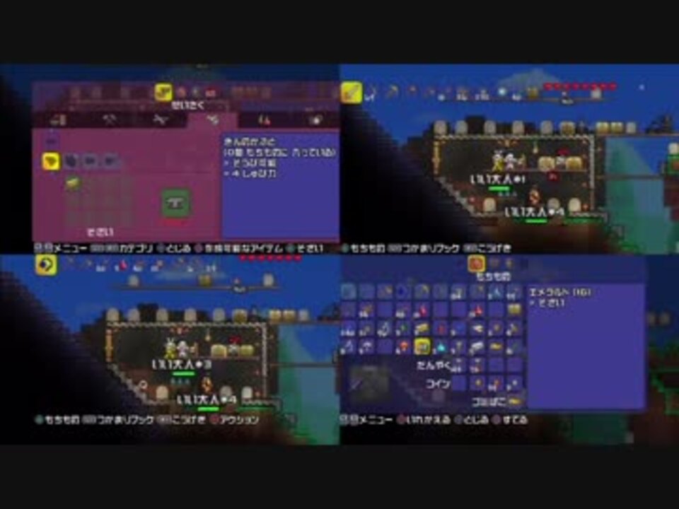 いい大人達がPS3版「テラリア」を本気で遊んでみました。<br />本人達は至って本気でプレイしておりますが、腕前の方はお察し下さい。<br /><br />なお、この動画は「テラリア先行実況プレイヤー募集企画」に参加して収録した内容となっています。<br /><br />登場人物:いつも愉快なタイチョー、いつものんびりオニーチャン<br />オニーチャンブラザー・ドムネギ、歳はみんなと同じだけどオッサン<br /><br />(ご注意!)タイチョーが絶叫している箇所が多々あります。<br /><br />PS3版テラリア公式サイト⇒<a href="http://www.spike-chunsoft.co.jp/terraria/" target="_blank" rel="noopener nofollow">http://www.spike-chunsoft.co.jp/terraria/</a><br />企画動画一覧はコチラ⇒<a href="https://www.nicovideo.jp/mylist/37059108" target="_blank" rel="noopener">mylist/37059108</a><br /><br />前→<a href="https://www.nicovideo.jp/watch/sm21139817" class="watch">sm21139817</a> 次→<a href="https://www.nicovideo.jp/watch/sm21172149" class="watch">sm21172149</a> これまでの実況→<a href="https://www.nicovideo.jp/mylist/17828031" target="_blank" rel="noopener">mylist/17828031</a> ラジオ→<a href="https://www.nicovideo.jp/mylist/28752088" target="_blank" rel="noopener">mylist/28752088</a>