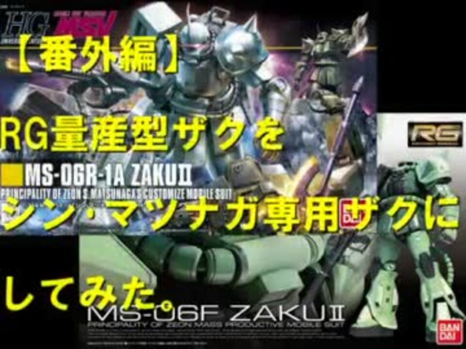 今回はRG量産型ザクⅡをHGUCシン・マツナガ専用ザクのパーツを使っての改造動画です。動力パイプとスラスターはメタルパーツを使用しています。最後まで見てくれたら幸いです。<br />追記:言い訳になるのですがこの動画を作成中風邪を引いていてしかも普通のザクも一緒に撮影しようとザクをいじっていたら足が折れてしまい、一緒に心も折れてしまいまして…。とりあえずうpしたんで…。<br />前回[RGデスティニーガンダム作ってみた]<a href="https://www.nicovideo.jp/watch/sm20937438" class="watch">sm20937438</a> → 次回[RGガンダム 試作1号機 ゼフィランサス,フルバーニアン作ってみた]sm<br />■投稿動画(<a href="https://www.nicovideo.jp/mylist/32450346" target="_blank" rel="noopener">mylist/32450346</a>)