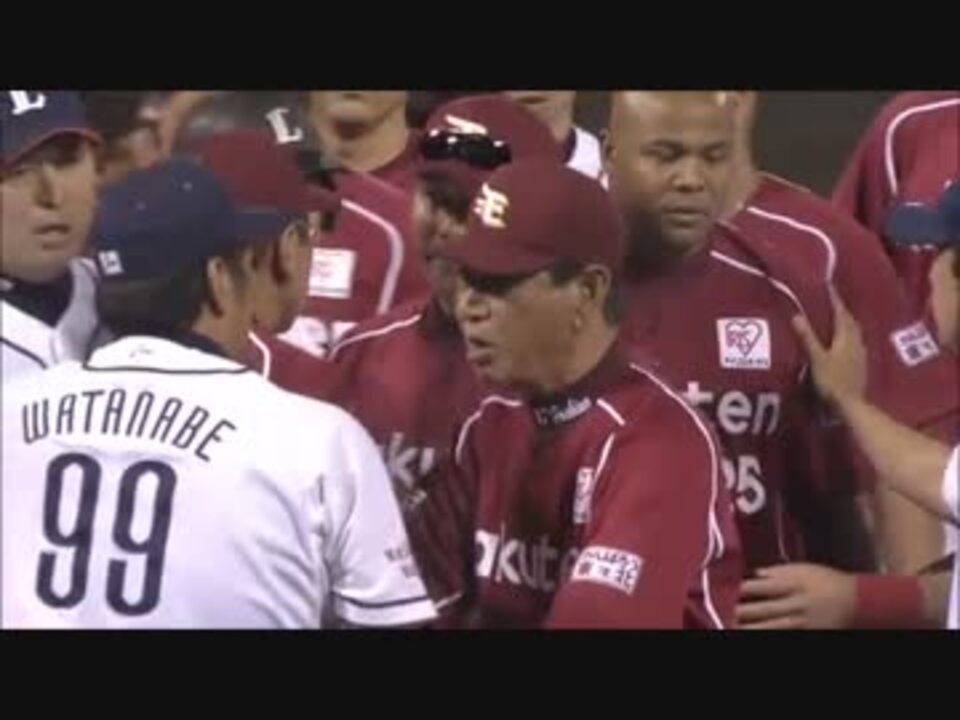 <b>※この試合乱闘に発展するまでの伏線があったらしいので簡単に書いておきます<br /><font color="blue"><br />1回 楽天の攻撃1アウト満塁の場面マギーのサードゴロは、併殺打コースのゴロ。<br />サードから転送された送球をセカンド山崎がカバーするが山崎の左足首に<br />一走ジョーンズの強烈なタックルが入り この回途中で負傷交代<br /><a href="http://www.youtube.com/watch?v=5yAntrhOaTQ" target="_blank" rel="noopener nofollow">http://www.youtube.com/watch?v=5yAntrhOaTQ</a><br /><br />7回 そのジョーンズに対してデッドボール<br />報復と捉えられかねない死球に<br />ジョーンズが西部の4番手・山本を睨み付ける<br />山本はすぐに帽子をとり謝罪(カウント的に投げミス?)<br /><a href="http://www.youtube.com/watch?v=mazzr0BBP38" target="_blank" rel="noopener nofollow">http://www.youtube.com/watch?v=mazzr0BBP38</a><br /><br />そして迎えた9回<br />大量リードにもかかわらず楽天は小山伸を投入 そして・・・</font></b>