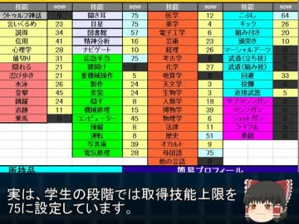 色々詰め込んでみた…努力の方向性を見失いつつある<br />前回><a href="https://www.nicovideo.jp/watch/sm21199013" class="watch">sm21199013</a><br />次回><a href="https://www.nicovideo.jp/watch/sm26321696" class="watch">sm26321696</a><br />オープンオフィス・旧エクセル対応(Xls) <br /> 最新のオフィスデータには年齢、純粋な一般探索者作成手順が追加されています。<br />次回に最新版をアップロードしました。 <br /><br />最新エクセル対応(xlsx) <br /><a href="http://xfs.jp/BEQdd" target="_blank" rel="noopener nofollow">http://xfs.jp/BEQdd</a> <br /><br />バージョンアップに加え、シート移送もより手軽になるよう調整しました<br /><br /><br />メロンソーダマシン8号様<br />yuzue様<br />宣伝ありがとうございます><<br />