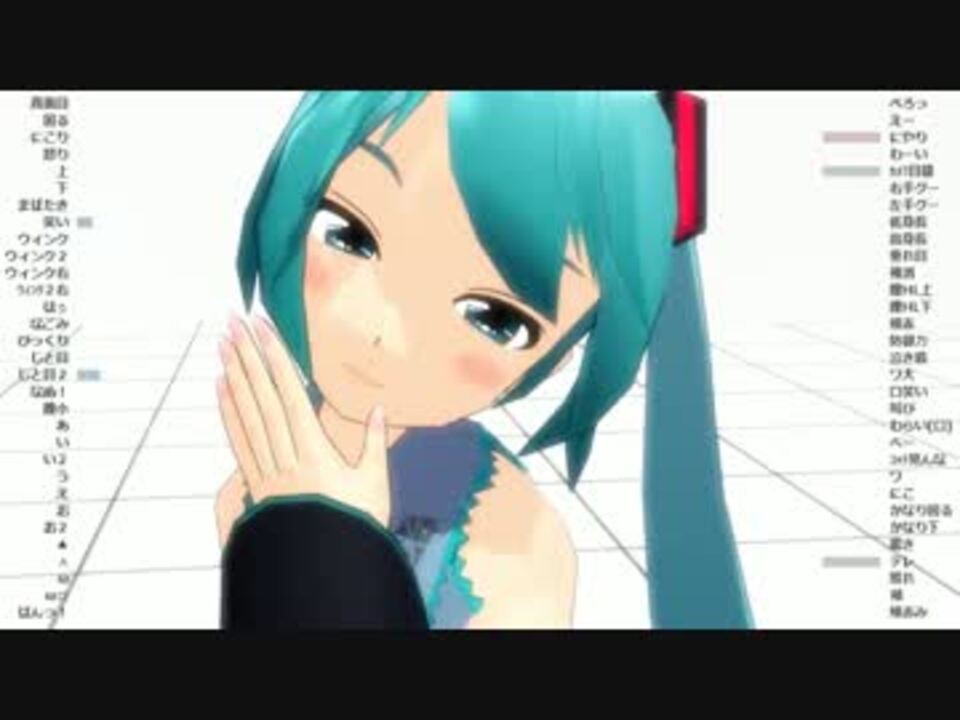 宣伝ありがとうございます!<br />先人がいらっしゃいました。→【MMD】表情ゲージチェッカー<a href="https://www.nicovideo.jp/watch/sm20644381" class="watch">sm20644381</a><br />最新版はVer2.0.4になります。配布場所は同じです。<br />左右の棒は何らかのツールではなくて、ただの手作りのPMXモデルです。<br />7200頂点くらいです。<a href="https://www.nicovideo.jp/mylist/18070526" target="_blank" rel="noopener">mylist/18070526</a><br />URLは下のほうに。<br />■音源・モーション:<a href="https://www.nicovideo.jp/watch/sm17624355" class="watch">sm17624355</a><br />■背景:3Dカスタム少女<br />■MME:Diffusion5、TrueCamera<br />■主な使用ツール:PMDEditor_0139、MikuMikuDance_v796、つんでれんこ2.40<br />■配布URL:<a href="http://bowlroll.net/up/dl21098" target="_blank" rel="noopener nofollow">http://bowlroll.net/up/dl21098</a><br />■備考:1280x720、30fps<br />■謝辞:MMD関連開発者様ならびにコンテンツ製作者様職人様に感謝。<br />