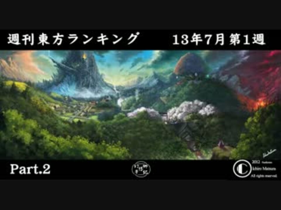 今週は第5回東方ニコ童祭スペシャル!100位から紹介の2本立て!<br />この動画はPart.2です(30位~1位まで)<br /><br />Part.1→[<a href="https://www.nicovideo.jp/watch/sm21294720" class="watch">sm21294720</a>]<br /><br /><br />■集計日時:2013年7月5日(金)<br />■集計期間:2013年6月28日(金) 6:00~7月5日(金) 6:00<br /><br />■今週のプレイリスト[<a href="http://dic.nicovideo.jp/v/sm21294720]" target="_blank" rel="noopener nofollow">http://dic.nicovideo.jp/v/sm21294720]</a><br />■週刊東方ランキングコミュニティ[co1671378]<br /><br />■東方見返週[<a href="https://www.nicovideo.jp/mylist/34358961" target="_blank" rel="noopener">mylist/34358961</a>]<br /><br />[<a href="https://www.nicovideo.jp/watch/sm21237288" class="watch">sm21237288</a>]←先週 次週→[<a href="https://www.nicovideo.jp/watch/sm21350511" class="watch">sm21350511</a>]<br />