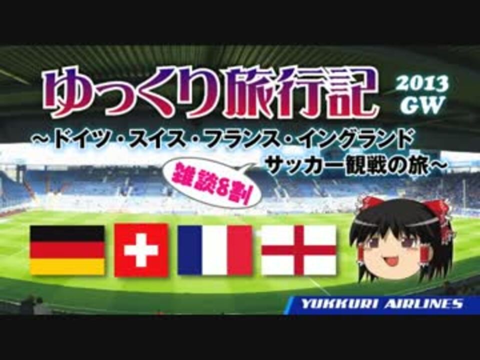 【前<a href="https://www.nicovideo.jp/watch/sm19755368" class="watch">sm19755368</a>/<a href="https://www.nicovideo.jp/mylist/32440587" target="_blank" rel="noopener">mylist/32440587</a>/次<a href="https://www.nicovideo.jp/watch/sm21344811" class="watch">sm21344811</a>】<br />2013年ゴールデンウィークのヨーロッパ四カ国旅行記の予告(?)と、昨年冬の旅行の裏話のようなものです。<br /><br />※gdgd観光したり、時々サッカーを見たりしていますが、ほぼ雑談です<br /><font color="#0000cd">※サッカー以外の雑談や特定の選手にハァハァする内容を好まない方、真面目な観戦記をご希望の方はブラウザバック推奨</font><br /><br />★旅動画シリーズ<br />2014 独スイス仏伊 <a href="https://www.nicovideo.jp/watch/sm25019394" class="watch">sm25019394</a><br />2013 独スイス仏英 <a href="https://www.nicovideo.jp/watch/sm21296213" class="watch">sm21296213</a><br />2012冬 独スイス <a href="https://www.nicovideo.jp/watch/sm19613978" class="watch">sm19613978</a><br />2012 仏ベルギー蘭独 <a href="https://www.nicovideo.jp/watch/sm17990698" class="watch">sm17990698</a><br />質問回答編 <a href="https://www.nicovideo.jp/watch/sm23987845" class="watch">sm23987845</a><br /><br />ゆっくり台湾散歩 <a href="https://www.nicovideo.jp/watch/sm29174568" class="watch">sm29174568</a><br /><br />★ニコニコ海外サッカー観戦 <a href="https://www.nicovideo.jp/mylist/36331343" target="_blank" rel="noopener">mylist/36331343</a><br />★趣味のゆっくり怪談 <a href="https://www.nicovideo.jp/mylist/26622042" target="_blank" rel="noopener">mylist/26622042</a><br />twitter@amagumohebi
