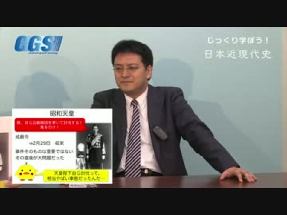 CGS公式ブログ(7/18,22,23,8/3,4,8公開収録!)<br />詳細はこちら⇒<a href="http://ameblo.jp/cgsinfo/" target="_blank" rel="noopener nofollow">http://ameblo.jp/cgsinfo/</a><br /><br />『じっくり学ぼう!日本近現代史』第11週支那事変と第二次世界大戦〜どこが軍部独裁?<br />第1話2.26事件〜・・・軍部ってダレ?<br />講師:憲政史家倉山満、聞き手:神谷宗幣<br /><br />第11週 <a href="https://www.nicovideo.jp/mylist/37732409" target="_blank" rel="noopener">mylist/37732409</a> 第10週 <a href="https://www.nicovideo.jp/mylist/37644897" target="_blank" rel="noopener">mylist/37644897</a> <br />第9週 <a href="https://www.nicovideo.jp/mylist/37568961" target="_blank" rel="noopener">mylist/37568961</a> 第8週 <a href="https://www.nicovideo.jp/mylist/37492942" target="_blank" rel="noopener">mylist/37492942</a><br /><br />今週は、支那事変と第二次世界大戦〜どこが軍部独裁?、ということで、軍事的に様々な動きがある時期です。よく言われる、軍部独裁。これがどういうものだったか考えていきます。<br />今回は、2.26事件。大変な事件ですが、暴走したとされる、軍部とはダレのことなんでしょう?<br /><br />CGS FBPage <a href="http://www.facebook.com/ChGrandStrategy" target="_blank" rel="noopener nofollow">http://www.facebook.com/ChGrandStrategy</a>