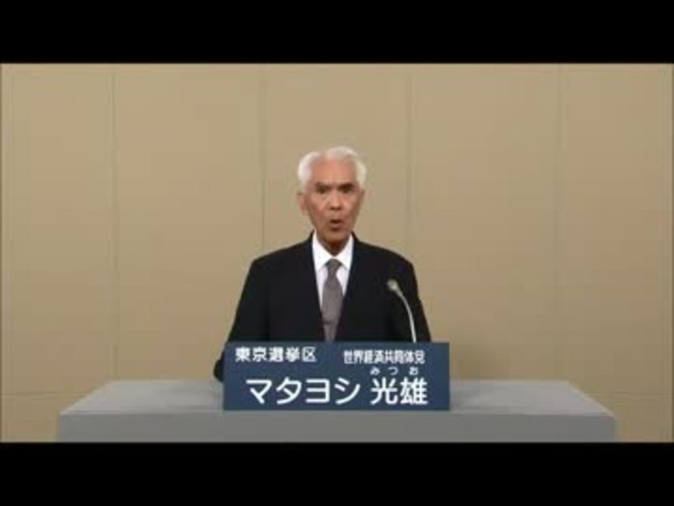 <b><font color="red">このままーーーではーーー日本経済ーはーーー破綻ーーーするー!!!!!!!!!!</font></b><br /><br />7月21日(日)は投票日です。選挙にいこうね。<br />対立候補:マック赤坂氏の政見放送はこちら → <a href="https://www.nicovideo.jp/watch/sm21337592" class="watch">sm21337592</a>