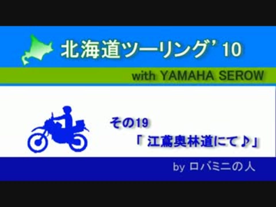 2010年にセローで北海道をツーリングしてきた時のメモ動画です。上陸6日目。林道をとぼとぼと走っているだけです♪<br /><br />【退屈にも程があります】※本作品はネタもなければ美しい風景もありません。退屈動画にご注意下さい。 <br /><br />※「3年前の風景です」まであと半月。それまでには完結させるべく頑張っています。頑張っていますか?頑張っていますよね。<br /><br />その18><a href="https://www.nicovideo.jp/watch/sm21278878" class="watch">sm21278878</a><br />その19>今ここ<br />その20><a href="https://www.nicovideo.jp/watch/sm21376812" class="watch">sm21376812</a><br /><br />※北海道ツーリング'10全部リスト><a href="https://www.nicovideo.jp/mylist/20533336" target="_blank" rel="noopener">mylist/20533336</a><br />※ツーリングに行こう♪全リスト><a href="https://www.nicovideo.jp/mylist/16416379" target="_blank" rel="noopener">mylist/16416379</a><br />※ローバーミニで行く北海道ツーリング'09><a href="https://www.nicovideo.jp/mylist/13879190" target="_blank" rel="noopener">mylist/13879190</a>