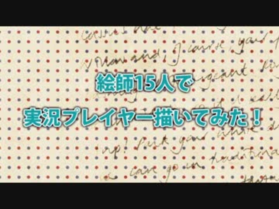 代理うpの者です。<br>今回は絵師さん15人で実況者描いてみました。<br><br>レオモン/シャボンババァ/@sbnBBA_yuka<br>ましお/未来乃/@mikunoxxx<br>大将ときの/千幸/1000uk1<br>kuru&しそ/菅瀬/@sgseeee <br>ガッチマン/たべた/@ww_pock <br>ボルゾイ企画/△(さんかく)/@sankaku_dotto <br>塩と胡椒/raimu/@RAImmmu <br>コジマ店員/Jinc/@Jstereoman <br>MHD/ひすい/@hisuiiiiiiii620 <br>キリン/夕茶/@tyabi_suko <br>レトルト/亞深/@_ami826 <br>アブ/すわこ/@nakasuwa <br>P/ふみすき/@fmsk_39 <br>最終兵器俺達/いち/@ichi_ar1 <br>M.S.S.Project/しおから/@40kara00<br><br>企画主催/シャボンババァ<br>動画編集/梅野みや/@umnmy06<br>