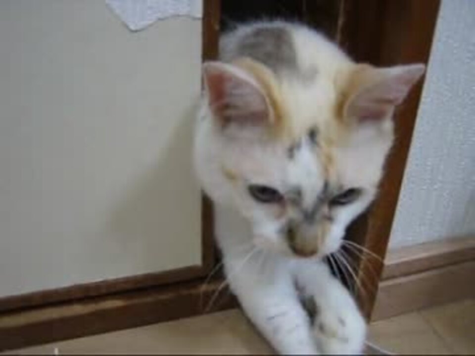 <font size=6 color=gold>猫虎同盟</font><br /><br />主が野球でうるさくすると、隣の部屋からやってくる白い影。<br />次【<a href="https://www.nicovideo.jp/watch/sm21568530" class="watch">sm21568530</a>】<font color=red>(8/11 うpしました)</font><br />マイリスト【<a href="https://www.nicovideo.jp/mylist/37879306" target="_blank" rel="noopener">mylist/37879306</a>】<br />コミュニティ【co450866】<br />追記:<font color=red>40,000再生ありがとうございます!</font><br />皆さんのコメントは楽しく読ませてもらってます!<br />前足が少し変なのは生まれつきです。<br />ちなみに心臓も少し強くはありません。<br />そのため去勢手術ができませんでした。<br />まぁ、私は自然なままで好きに生きたらいいと思うほうなので、できないならできないなりに生きればいいと思います。<br />ちなみに、躾るならこういうときは開けちゃダメみたいです。でも、さすがに無視できないw