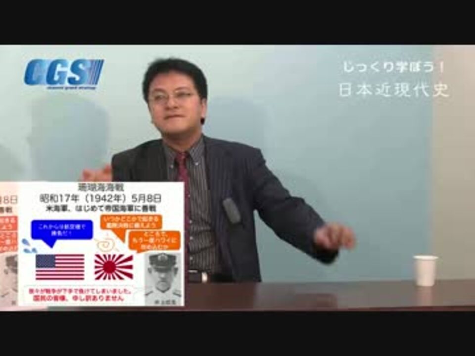 CGS公式ブログ(7/18古谷経衡先生、23奥山真司先生公開収録!)<br />詳細はこちら⇒<a href="http://ameblo.jp/cgsinfo/" target="_blank" rel="noopener nofollow">http://ameblo.jp/cgsinfo/</a><br /><br />『じっくり学ぼう!日本近現代史』第12週大東亜戦争〜世界最強の帝国陸海軍が負けたワケ<br />第2話ミッドウェー海戦〜まだまだ強いぞ!帝国陸海軍<br />講師:憲政史家倉山満、聞き手:神谷宗幣<br /><br />第12週 <a href="https://www.nicovideo.jp/mylist/37865044" target="_blank" rel="noopener">mylist/37865044</a> 第11週 <a href="https://www.nicovideo.jp/mylist/37732409" target="_blank" rel="noopener">mylist/37732409</a> <br />第10週 <a href="https://www.nicovideo.jp/mylist/37644897" target="_blank" rel="noopener">mylist/37644897</a> 第9週 <a href="https://www.nicovideo.jp/mylist/37568961" target="_blank" rel="noopener">mylist/37568961</a><br /><br />今週は、「大東亜戦争」。太平洋戦争?ナニソレ?<br />今回は、ミッドウェー海戦。圧倒的な強さを見せる帝国陸海軍が、圧倒的な戦力で運命のミッドウェーへ!<br />そして、誰も予想できなかった事態が!<br /><br />CGS FBPage <a href="http://www.facebook.com/ChGrandStrategy" target="_blank" rel="noopener nofollow">http://www.facebook.com/ChGrandStrategy</a>