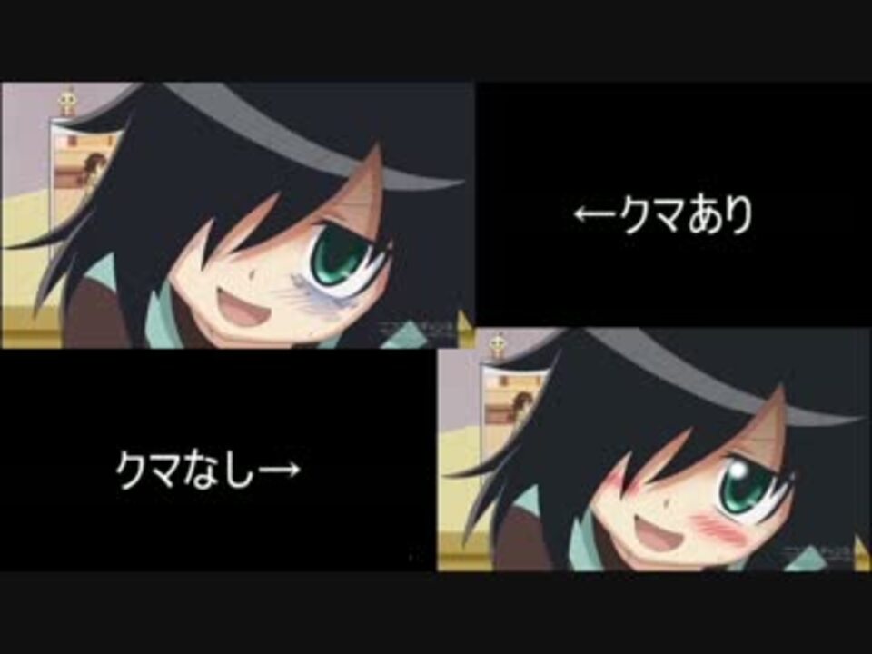 比較動画です。目の下のクマを消してみたんだけど【わたモテエンディング】<a href="https://www.nicovideo.jp/watch/sm21386982" class="watch">sm21386982</a>と比較しました。少し見にくい部分があるかもしれません。それから、タイトルの文字数の都合上タイトルを少し変更してあります。