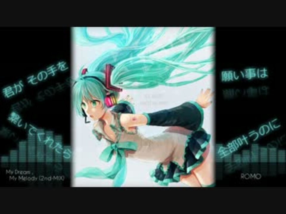 My Dream , My Melodyのセルフリミックスです。<br />2ndとか書いてありますが、多分5回ぐらいやり直してます(汗<br /><br />色々と成長している(はず)なので、<br />前のと比べて聴くのも面白いんじゃないかと思います。<br /><br />□Illustration by かや (<a href="http://piapro.jp/t/pnWz)" target="_blank" rel="noopener nofollow">http://piapro.jp/t/pnWz)</a><br />□Vocal by 初音ミク<br />□Music & Lyrics by ROMO (<a href="https://www.nicovideo.jp/mylist/36749621" target="_blank" rel="noopener">mylist/36749621</a>)<br /><br /><a href="https://twitter.com/tune38_romo" target="_blank" rel="noopener nofollow">https://twitter.com/tune38_romo</a><br /><br />SoundCloudのかわりにPIAPRO貼っときます↓<br /><a href="http://piapro.jp/t/B9GF" target="_blank" rel="noopener nofollow">http://piapro.jp/t/B9GF</a><br /><br />