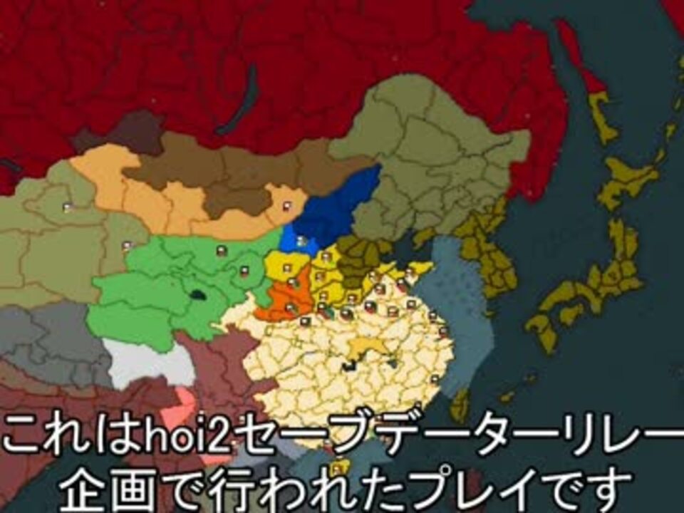 ジョン・ユックリ氏企画の国民党セーブデータリレーの動画となります。<br />参加者は前のセーブから一年づつ進める、一年経過次第次のプレイヤーにセーブデーターを渡すというスタイルのHoI2プレイであります。私は1938年をプレイしました。<br /><br />本企画のページ→<a href="http://hoi2aar.paradwiki.org/index.php?%B9%F1%CC%B1%C5%DE%A4%E8%A5%EA%A5%EC%A1%BC%A4%C7%A4%E2%B1%CA%B1%F3%A4%CA%A4%EC%A1%AA" target="_blank" rel="noopener nofollow">http://hoi2aar.paradwiki.org/index.php?%B9%F1%CC%B1%C5%DE%A4%E8%A5%EA%A5%EC%A1%BC%A4%C7%A4%E2%B1%CA%B1%F3%A4%CA%A4%EC%A1%AA</a><br /><br />1936年ジョンユックリ氏によるプレイ<a href="https://www.nicovideo.jp/watch/sm21027464" class="watch">sm21027464</a><br />1937年ヨークタウン氏によるプレイ<a href="http://hoi2aar.paradwiki.org/index.php?%B9%F1%CC%B1%C5%DE%A4%E8%A5%EA%A5%EC%A1%BC%A4%C7%A4%E2%B1%CA%B1%F3%A4%CA%A4%EC%A1%A11937%C7%AF" target="_blank" rel="noopener nofollow">http://hoi2aar.paradwiki.org/index.php?%B9%F1%CC%B1%C5%DE%A4%E8%A5%EA%A5%EC%A1%BC%A4%C7%A4%E2%B1%CA%B1%F3%A4%CA%A4%EC%A1%A11937%C7%AF</a><br /><b>次1938年 kurogane氏<a href="https://www.nicovideo.jp/watch/sm21418470" class="watch">sm21418470</a></b><br /><br />我が動画群<a href="https://www.nicovideo.jp/mylist/35824723" target="_blank" rel="noopener">mylist/35824723</a> そして現在継続中の動画<a href="https://www.nicovideo.jp/mylist/36654775" target="_blank" rel="noopener">mylist/36654775</a>