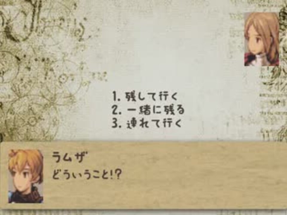 <font size="3"><b>FFTがもしももう少しだけハッピーな展開だったらどうなってたんだろう。</b></font><br />ちなみに妄想主はFFTの原作ストーリー大好き。<br /><br /><br /><b>前回</b>→<a href="https://www.nicovideo.jp/watch/sm21353676" class="watch">sm21353676</a><b> ハッピーなマイリスト</b>→<a href="https://www.nicovideo.jp/mylist/32464437" target="_blank" rel="noopener">mylist/32464437</a> <b>次回</b>→<a href="https://www.nicovideo.jp/watch/sm21548651" class="watch">sm21548651</a><br /><b>ハッピーなCM</b>→<a href="https://www.nicovideo.jp/mylist/35684796" target="_blank" rel="noopener">mylist/35684796</a><br /><b><font color="blue">Twitter</font></b>→<a href="http://twitter.com/mousouprincess2" target="_blank" rel="noopener nofollow">http://twitter.com/mousouprincess2</a><br /><b>おたより</b>→mousouprincess.<a href="https://ch.nicovideo.jp/channel/ch2" target="_blank" rel="noopener">ch2</a>@gmail.com<br /><br /><b>呆れるほどハッピーなコミュニティ</b>→co2211704<br /><br /><b>視聴者さんのイラスト</b>→<a href="https://seiga.nicovideo.jp/clip/809281" target="_blank" rel="noopener">clip/809281</a><br />