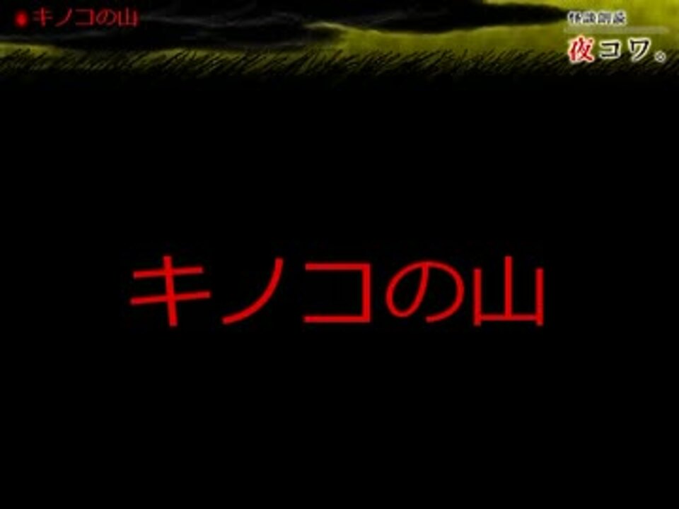 我が家のゆっくりが、心霊サイト「夜コワ。」から読んでくれました。<br />ニコ生で流した動画の詰め合わせです。既読の場合はご容赦下さい。<br />放送しているコミュ>>co120573<br /><br />1話目:<a href="#" class="seekTime" data-seekTime="00:00" onclick="seekNicoPlayer('#00:00'); return false;">#00:00</a> ((( 凸;)))<br />2話目:<a href="#" class="seekTime" data-seekTime="02:22" onclick="seekNicoPlayer('#02:22'); return false;">#02:22</a> 見えるのか<br />3話目:<a href="#" class="seekTime" data-seekTime="04:55" onclick="seekNicoPlayer('#04:55'); return false;">#04:55</a> 俺、結婚するかも。<br />4話目:<a href="#" class="seekTime" data-seekTime="06:46" onclick="seekNicoPlayer('#06:46'); return false;">#06:46</a> キノコの山<br /><br />人によっては残酷と感じる表現が含まれる場合があります。<br />お気に召されないお話があった場合は、飛ばしてご視聴下さい。<br /><br />自動で次の動画に移動するように設定してあります。<br />ループが嫌な方は、お手数なのですが、終わり際で停止ボタンを<br />押すようにして下さい。<br /><br />バックナンバー>><a href="https://www.nicovideo.jp/mylist/34820449" target="_blank" rel="noopener">mylist/34820449</a><br />別シリーズ>><a href="https://www.nicovideo.jp/mylist/35018789" target="_blank" rel="noopener">mylist/35018789</a>