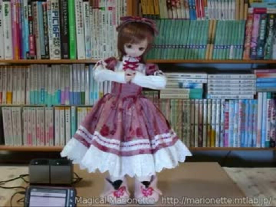 まじかる☆マリオネットの 「茉莉花」はドルフィードリームシスターのボディを使ったドールロボットです。人形の服をそのまま着られます。<br /><br />Android端末の音声認識機能を使って会話機能を追加してみました<br />話しかけると、動きながら返事をします<br />サーバと連携してlivedoorの天気予報を喋ることもできます<br /><font color="red">できることが増えました: <a href="https://www.nicovideo.jp/watch/sm25554679" class="watch">sm25554679</a></font><br />投稿動画リスト: <a href="https://www.nicovideo.jp/mylist/24361098" target="_blank" rel="noopener">mylist/24361098</a><br /><br />頭の中のLinuxボードとAndroid端末をBluetoothで繋ぎ、その先にネット上のサーバがあります。バッテリーは胸に入っています<br /><br />声は CeVIO Creative Studio と、OpenJTalkを併用しています<br />BGMはアフレコです<br /><br />開発日誌: <a href="http://marionette.mtlab.jp/" target="_blank" rel="noopener nofollow">http://marionette.mtlab.jp/</a><br /><br />5000再生&広告ありがとうございます。<br />