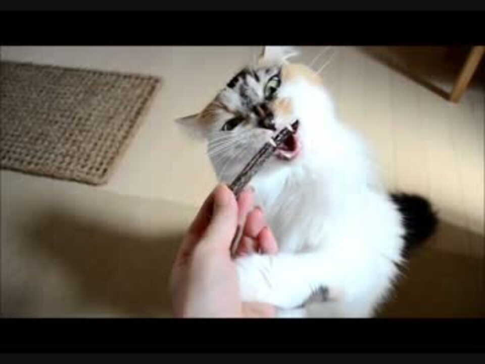マタタビの木をかじる猫