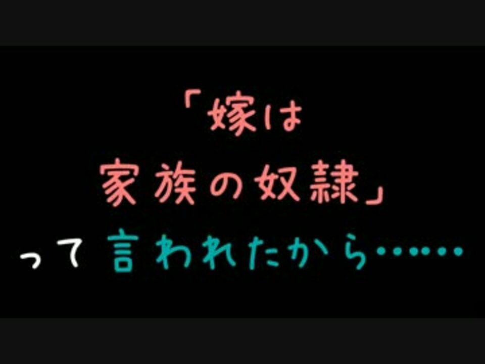 嫁いびり問題って夫がしっかりしないと駄目ですよね(’・ω・)<br />結婚するぐらい愛した女ならしっかり守ってやれよ、と思っちゃいます。<br />せっかく結婚できたのに……せっかく…………<br /><br />次作 【800円ケチって6万円損した馬鹿なDQN】:<a href="https://www.nicovideo.jp/watch/sm21529103" class="watch">sm21529103</a><br /><br />【うちの子可愛いでしょ?アピールしてくる非常識な親子】:<a href="https://www.nicovideo.jp/watch/sm21521347" class="watch">sm21521347</a><br />【不倫ばかりする友人「結婚相手は安全パイが最適」】:<a href="https://www.nicovideo.jp/watch/sm21514147" class="watch">sm21514147</a><br />【病院で踊る子どもにやんわり注意→「人の子に口出すな」】:<a href="https://www.nicovideo.jp/watch/sm21514089" class="watch">sm21514089</a><br />【寝とり新婦の招待状をビリビリに破って返送した結果ww】:<a href="https://www.nicovideo.jp/watch/sm21505651" class="watch">sm21505651</a><br /><br />こぴぺ系投稿動画まとめ・BGM詳細:<a href="https://www.nicovideo.jp/mylist/32575780" target="_blank" rel="noopener">mylist/32575780</a> その2:<a href="https://www.nicovideo.jp/mylist/36385270" target="_blank" rel="noopener">mylist/36385270</a><br /><br />