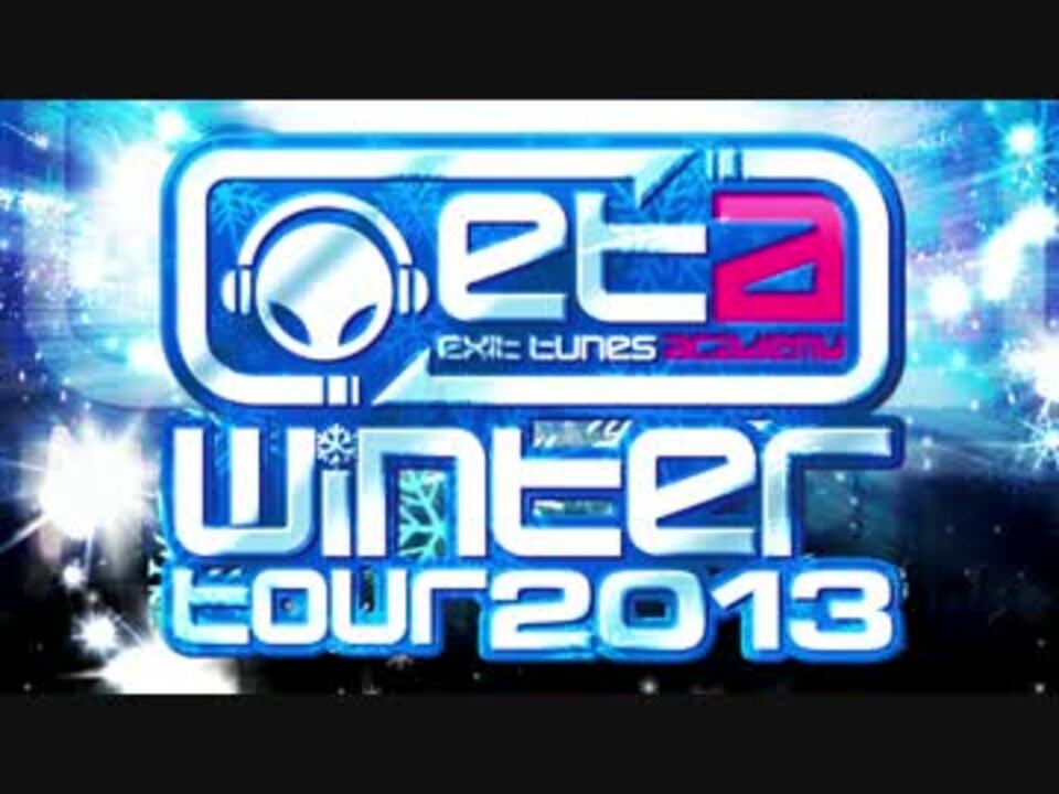 <font size="4" color="#00bfff"><b>EXIT TUNES ACADEMY WINTER TOUR 2013<br /></font><br />[会場]<br />1215(Sun)@Zepp Tokyo<br />1221(Sat)@Zepp Namba<br />1223(Mon)@Zepp Nagoya<br /><br />[チケット料金]<br />eta.jp会員特別価格 2,480円(税抜)<br />コミュニティ先行価格 1,980円(税抜)<br />※9/23(月・祝)23時まで!!<br /><br />[出演者]亜沙/add9(ヘリP)/__(アンダーバー)/164/ぐるたみん/ジミーサムP/しゃむおん/じんけ(東京のみ)/スズム/Starving Trancer(Another Infinity) feat.Mayumi Morinaga/赤飯/DJ UTO/デッドボールP/蝶々P/灯油/ふわりP/まじ娘(名古屋のみ)/松下/みきとP/りょーくん/luz(大阪のみ)/YM 他<br />※出演者は、変更になる場合があります。予めご了承ください。<br /><br /><b>ETAを100倍楽しむ為の諸注意!!<br /><a href="https://www.nicovideo.jp/watch/sm19375774" class="watch">sm19375774</a><br /></b></b>