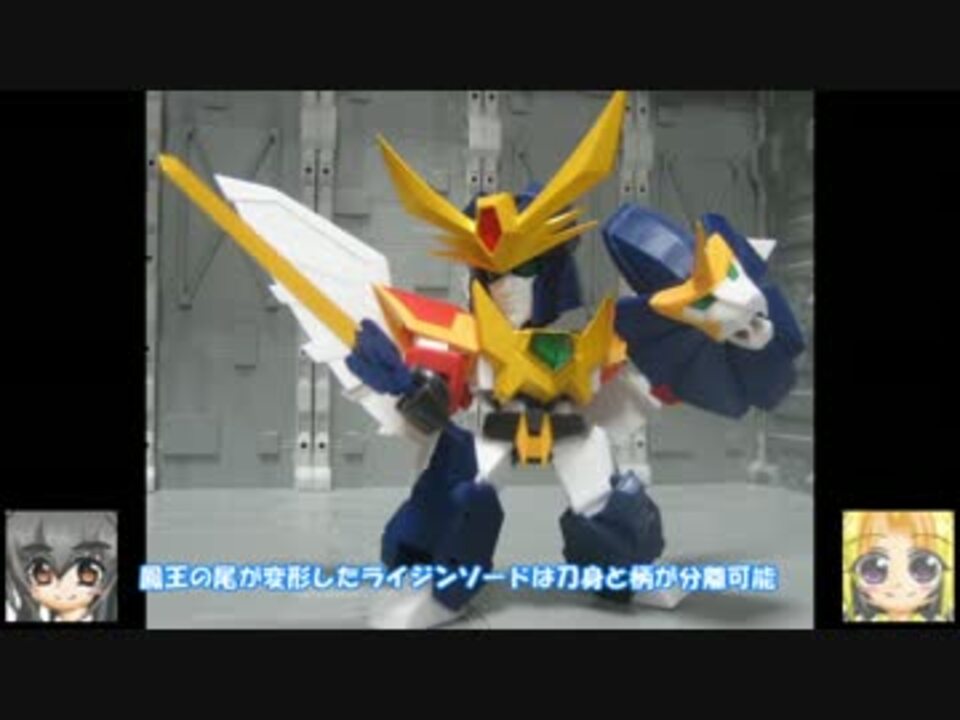 ライジンオー:ぼくらの夢は絶対無敵!<br /><br />「頼んだぞ・・・地球の子供たちよ・・」と、エルドランとゆー人が押しつけてったので作りました。<br />(子供じゃないけど気にしない(殴)<br /><br />実際の所はダブルオーヴェイン用のウェポンを探してたら目が合ったので購入。<br />これまでの事を考えればゴッドまで出そうですが、果たしてグレートガンバルガーやキングゴウザウラーは出るのかどうか・・<br />(個人的にはあのパズル合体をどうするのか見てみたいですが)<br /><br />※というワケで急遽ライジンオーになりました(殴<br /><br /><br />前:<a href="https://www.nicovideo.jp/watch/sm21910692" class="watch">sm21910692</a> 次:<a href="https://www.nicovideo.jp/watch/sm21953333" class="watch">sm21953333</a><br />gdgdなまいりすと:<a href="https://www.nicovideo.jp/mylist/34200103" target="_blank" rel="noopener">mylist/34200103</a> <br />part1のそのまとめ:<a href="https://www.nicovideo.jp/mylist/38571405" target="_blank" rel="noopener">mylist/38571405</a><br />HP: <a href="http://plaza.rakuten.co.jp/04flatunionriver" target="_blank" rel="noopener nofollow">http://plaza.rakuten.co.jp/04flatunionriver</a>