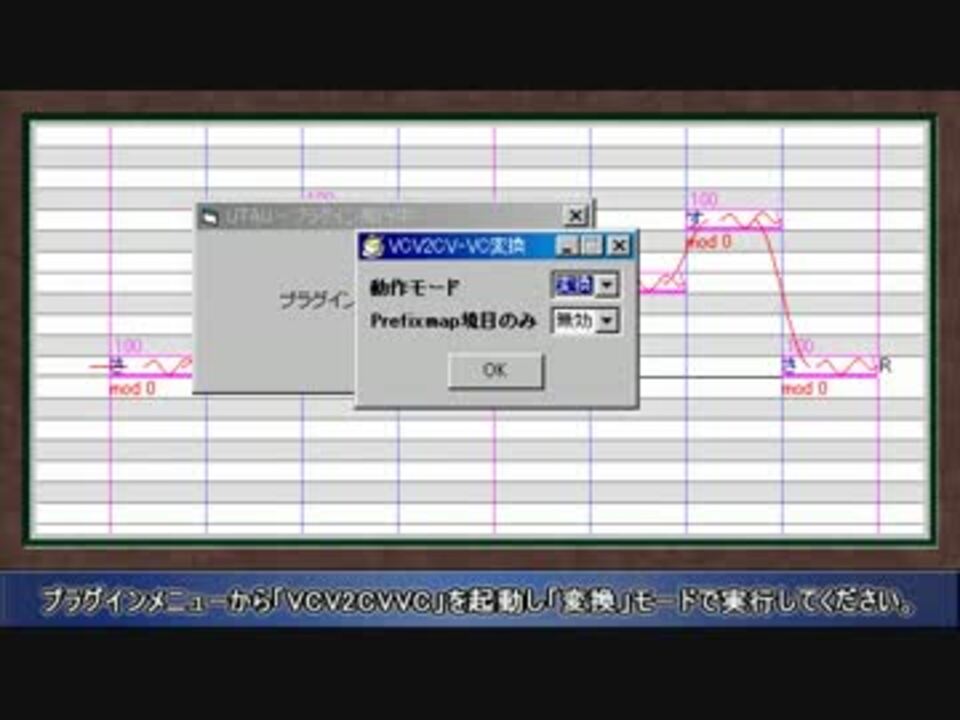 <a href="https://www.nicovideo.jp/watch/sm21670576" class="watch">sm21670576</a>を更に手抜き仕様にしてみました。 UTAU上での操作性と視認性は若干落ちましたが、連続音音源をそのままCVVC音源として利用することができます。 実際に使ってみたものがこちら<a href="https://www.nicovideo.jp/watch/sm22069622" class="watch">sm22069622</a> <a href="https://www.nicovideo.jp/mylist/38696955" target="_blank" rel="noopener">mylist/38696955</a><br /><br />VCV2CVVC v0.03<br /><a href="https://bowlroll.net/file/129344" target="_blank" rel="noopener nofollow">https://bowlroll.net/file/129344</a><br />GUIの文字化けと不一致エイリアスの誤変換バグを修正、VV音素のクロスフェード量を調整<br /><br />シークポイント(※うまくシークできない場合もあります)<br />■音源製作<a href="#" class="seekTime" data-seekTime="0:13" onclick="seekNicoPlayer('#0:13'); return false;">#0:13</a> ■ノート入力<a href="#" class="seekTime" data-seekTime="0:30" onclick="seekNicoPlayer('#0:30'); return false;">#0:30</a> ■CVVCへの変換<a href="#" class="seekTime" data-seekTime="0:57" onclick="seekNicoPlayer('#0:57'); return false;">#0:57</a> ■CVVCから単独音に戻す<a href="#" class="seekTime" data-seekTime="1:44" onclick="seekNicoPlayer('#1:44'); return false;">#1:44</a> ■専用すっぴんプラグイン<a href="#" class="seekTime" data-seekTime="2:09" onclick="seekNicoPlayer('#2:09'); return false;">#2:09</a> ■Prefixmap境目変換<a href="#" class="seekTime" data-seekTime="2:41" onclick="seekNicoPlayer('#2:41'); return false;">#2:41</a>