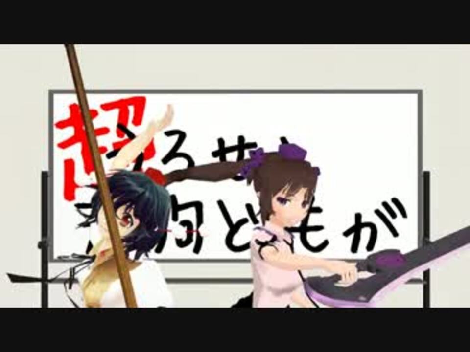 超うるせぇ天狗どもがモンハンをフリーダムに遊ぶそうです。<br />皆様に大事なモノをお届けする、それがテングメイトです。<br />※いつも宣伝ありがとうございます。<br /><br />・きめぇまる(赤)⇒画面上部分の体力ゲージ辺りを厚い紙で隠してます<br />・もみじ(青)・はたて(紫)・チルノ(水色)<br />前へ[<a href="https://www.nicovideo.jp/watch/sm22058752" class="watch">sm22058752</a>] | 次へ[<a href="https://www.nicovideo.jp/watch/sm22153259" class="watch">sm22153259</a>]<br />舞台裏(試験中)[<a href="https://seiga.nicovideo.jp/comic/8461" target="_blank" rel="noopener">comic/8461</a>]<br /><br />【超うるせぇ天狗ども】<a href="https://www.nicovideo.jp/mylist/38689875" target="_blank" rel="noopener">mylist/38689875</a><br />【うるせぇ天狗ども】<a href="https://www.nicovideo.jp/mylist/36792701" target="_blank" rel="noopener">mylist/36792701</a><br /><br />製作者様方に感謝ッ!<br />・使用モデル:射命丸文(min様)/姫海棠はたて(つみだんご様)/⑨(えと様)<br />・背景:会議室(ヤマド様)<br />・アクセサリ:諸々(とりそば様/べー@鍛冶屋P様/A01hudebako様)