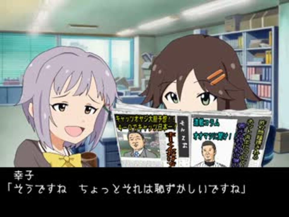 <font size="5" color="black">4勝2敗でキャッツとみた!</font><br /><br /><font size="4" color="orange">ユッキ「減俸組に期待!」</font><br /><br /><font size="4" color="#dc143c">まゆ「プロデューサーさぁん 日本シリーズのチケット取れましたぁ うふ 一緒に行きませんか? ついでにまゆの実家に」</font><br /><br /><font size="3" color="blue">このシリーズはフィクションであり、実在の人物・団体など一切関係ありません。</font><br /><br /><br /><br /><br />今回のお話は、アイドル×野球選手回<br />次回→<a href="https://www.nicovideo.jp/watch/sm22182998" class="watch">sm22182998</a><br />前回→<a href="https://www.nicovideo.jp/watch/sm22072043" class="watch">sm22072043</a><br />ツイッタ―<a href="http://twitter.com/fusionP" target="_blank" rel="noopener nofollow">http://twitter.com/fusionP</a><br />いつもの作品(<a href="https://www.nicovideo.jp/mylist/14507956" target="_blank" rel="noopener">mylist/14507956</a>