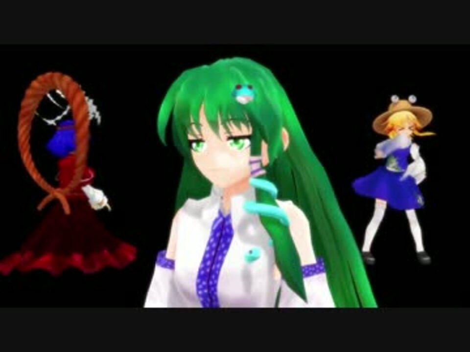 屍体さんがやれって<br /><br />元凶:<a href="https://www.nicovideo.jp/watch/sm22100456" class="watch">sm22100456</a><br /><br />早苗さん(鯖缶様):<a href="https://www.nicovideo.jp/watch/sm17148704" class="watch">sm17148704</a><br />神奈子様(nakao様):<a href="https://seiga.nicovideo.jp/seiga/im2051403" target="_blank" rel="noopener">im2051403</a><br />すわこさま(min様.):<a href="https://www.nicovideo.jp/watch/sm19670331" class="watch">sm19670331</a><br /><br />デフュージョンフィルタ(そぼろ様):<a href="https://www.nicovideo.jp/watch/sm12182051" class="watch">sm12182051</a><br />モーションブラー(そぼろ様):<a href="https://www.nicovideo.jp/watch/sm14179584" class="watch">sm14179584</a><br />オートルミナス(そぼろ様):<a href="https://www.nicovideo.jp/watch/sm16087751" class="watch">sm16087751</a><br />エクセレントシャドウ(そぼろ様):<a href="https://www.nicovideo.jp/watch/sm19123817" class="watch">sm19123817</a><br />高品質版SSAO(おたもん様):<a href="https://seiga.nicovideo.jp/seiga/im1763840" target="_blank" rel="noopener">im1763840</a><br />
