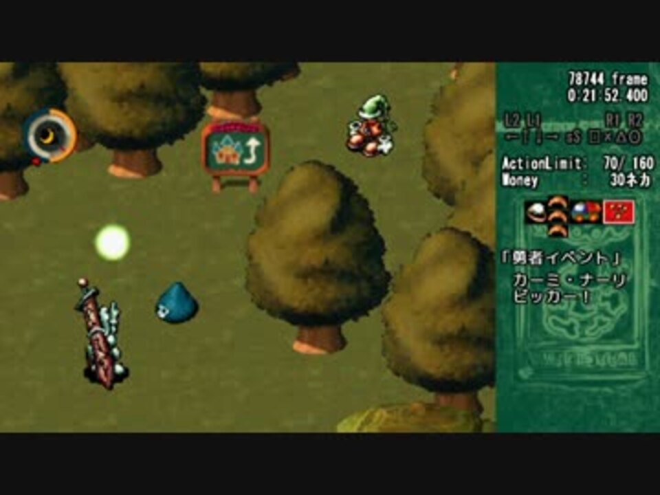 もう勇者しない。<br /><br />1日目→<a href="https://www.nicovideo.jp/watch/sm22073542" class="watch">sm22073542</a><br />斜め移動の検証→<a href="https://www.nicovideo.jp/watch/sm22173260" class="watch">sm22173260</a><br />3日目→<a href="https://www.nicovideo.jp/watch/sm22215032" class="watch">sm22215032</a><br />moonマイリスト:<a href="https://www.nicovideo.jp/mylist/39895545" target="_blank" rel="noopener">mylist/39895545</a><br />追記回数:3464回<br /><br />自作TASマイリスト:<a href="https://www.nicovideo.jp/mylist/34250554" target="_blank" rel="noopener">mylist/34250554</a><br />ブログ:<a href="http://tyigaxu.blog115.fc2.com/" target="_blank" rel="noopener nofollow">http://tyigaxu.blog115.fc2.com/</a>