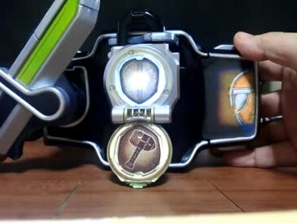 ・フェイスプレートイラスト(お試しコピー用紙版)・開錠スイッチと音声再生を連動・LED追加&シールを透過素材でリメイクで、グリドン変身を再現してみました。