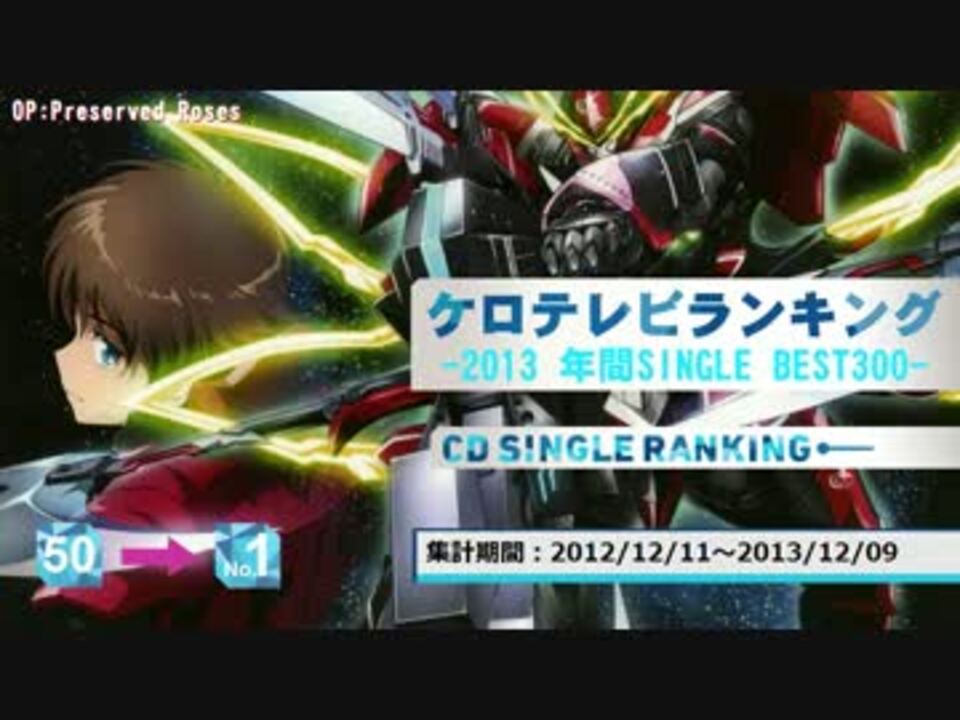 [HP]<a href="http://www20.atwiki.jp/keroro00innovator/" target="_blank" rel="noopener nofollow">http://www20.atwiki.jp/keroro00innovator/</a><br />まとめ:<br />集計期間:2012/12/11~2013/12/09<br />基本的にアニメソングのみ。除外基準:<a href="http://www20.atwiki.jp/keroro00innovator/pages/4.html" target="_blank" rel="noopener nofollow">http://www20.atwiki.jp/keroro00innovator/pages/4.html</a><br />51-150:<a href="https://www.nicovideo.jp/watch/sm22607410" class="watch">sm22607410</a> 151-300:<a href="https://www.nicovideo.jp/watch/sm22432783" class="watch">sm22432783</a> アルバム:<a href="https://www.nicovideo.jp/watch/sm22430879" class="watch">sm22430879</a> DVD/BD特典:<a href="https://www.nicovideo.jp/watch/sm22405159" class="watch">sm22405159</a> ランキング一覧:<a href="https://www.nicovideo.jp/mylist/22696553" target="_blank" rel="noopener">mylist/22696553</a>