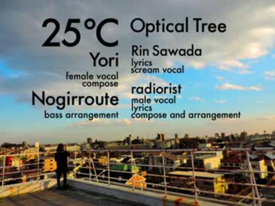 愛ゆえに祈り、祈るがゆえに愛すのならば、愛とはすなわち生だ。<br /><br /><br />今回はボーカルとベースにゲストを迎えて、OpTr初のNNI投稿です。<br /><u><b><font size="5">■Optical Tree 【<a href="https://www.nicovideo.jp/mylist/38703087" target="_blank" rel="noopener">mylist/38703087</a>】</font></b></u><br />*沢田凛 【<a href="https://www.nicovideo.jp/mylist/31274722" target="_blank" rel="noopener">mylist/31274722</a>】 Twitter:sawadarling<br />*radiorist 【<a href="https://www.nicovideo.jp/mylist/33031904" target="_blank" rel="noopener">mylist/33031904</a>】 Twitter:radiorist<br /><br />□Guest Member<br />Bass:Nogirroute 【<a href="https://www.nicovideo.jp/mylist/11814259" target="_blank" rel="noopener">mylist/11814259</a>】Twitter:nogirroute<br />Vocal:依り【<a href="https://www.nicovideo.jp/mylist/36436387" target="_blank" rel="noopener">mylist/36436387</a>】Twitter:_iroy_s<br /><br />□Support Member<br />Photo:うサギし Twitter:usagisi1120<br /><br />【<a href="https://www.nicovideo.jp/watch/sm22511654" class="watch">sm22511654</a>】← here →【<a href="https://www.nicovideo.jp/watch/sm22939399" class="watch">sm22939399</a>】 <br />
