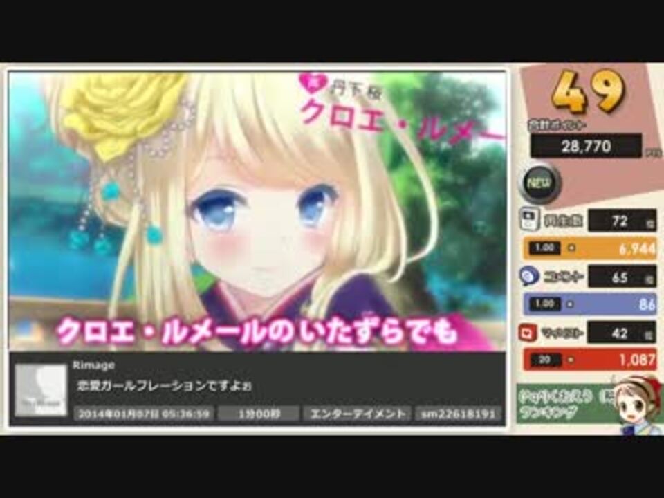 | 番号 | 総合順位 | ポイント | ジャンル順位 | カテゴリ | 再生順位 | 再生数 | コメント順位 | コメント数 | マイリスト順位 | マイリスト数 | いいね順位 | いいね数 |