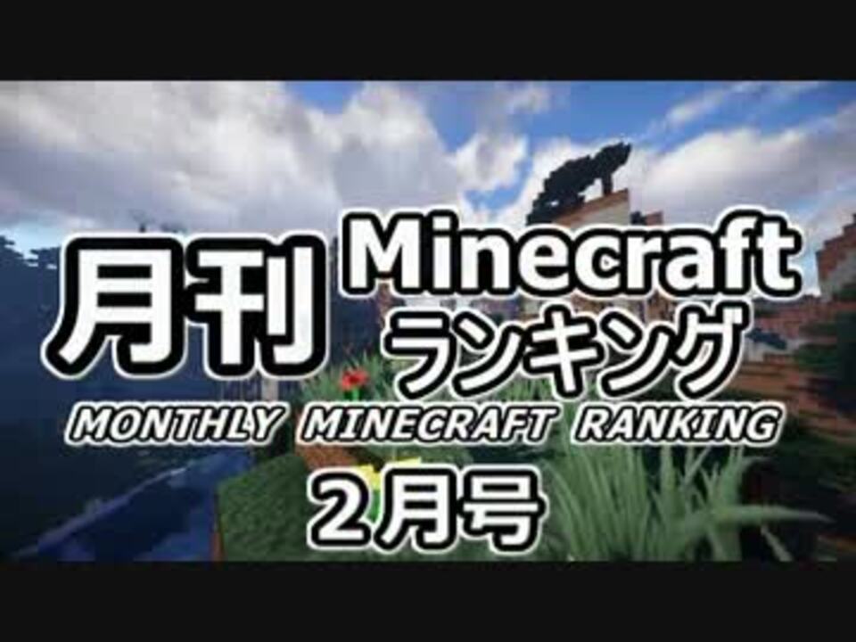 休憩しながらまったりどうぞ♪<br /><br />■集計方法:再生数+コメント数+マイリスト数×20で総合ポイントを算出<br />■集計期間:2月1日0時~2月28日23時59分まで<br />■集計対象:1.集計期間内に投稿された『Minecraft』タグがついたゲームカテゴリー作品。2.同じ投稿者のシリーズ動画が複数ランクインした場合、最もよいランキングのみ採用。3.同じ投稿者による動画でも別シリーズならばランキング。<br /><br />※2月号にランクインした1~100位の動画→<a href="https://www.nicovideo.jp/mylist/41852223" target="_blank" rel="noopener">mylist/41852223</a>、ピックアップ候補まとめ→<a href="https://www.nicovideo.jp/mylist/41540332" target="_blank" rel="noopener">mylist/41540332</a><br />1月号→<a href="https://www.nicovideo.jp/watch/sm22908451" class="watch">sm22908451</a>、3月号→<a href="https://www.nicovideo.jp/watch/sm23323152" class="watch">sm23323152</a>、バックナンバー→<a href="https://www.nicovideo.jp/mylist/30767547" target="_blank" rel="noopener">mylist/30767547</a>