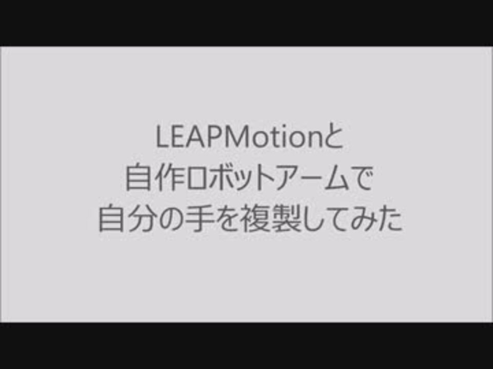どうも <b>やまち</b> といいます。普段は108(ひゃくはち)という名前でモノサシ弾いてます。<br />今回は<b>作ってみた動画初投稿</b>です。見てくれたらうれしいです。<br /><br />さて、初作ってみたはLEAPMotionでロボットアームの制御です。<br />皆さん「手がもう一本欲しい」と思ったことありませんか?<br />趣味用ツイッターはこちら。質問があればどうぞ。→ <a href="https://twitter.com/yamachisama1" target="_blank" rel="noopener nofollow">https://twitter.com/yamachisama1</a><br />作ってみた動画→<a href="https://www.nicovideo.jp/mylist/42838861" target="_blank" rel="noopener">mylist/42838861</a><br />モノサシ動画→<a href="https://www.nicovideo.jp/mylist/33518929" target="_blank" rel="noopener">mylist/33518929</a><br /><br />BGMお借りしました→フリー音楽素材MusMus:カバルの丘 <a href="http://musmus.main.jp/" target="_blank" rel="noopener nofollow">http://musmus.main.jp/</a><br /><a href="https://www.nicovideo.jp/watch/sm1237915" class="watch">sm1237915</a><br />(<a href="#" class="seekTime" data-seekTime="5:05" onclick="seekNicoPlayer('#5:05'); return false;">#5:05</a>):脱走してみた <br />(<a href="#" class="seekTime" data-seekTime="5:43" onclick="seekNicoPlayer('#5:43'); return false;">#5:43</a>):お絵かきしてみた<br />(<a href="#" class="seekTime" data-seekTime="6:35" onclick="seekNicoPlayer('#6:35'); return false;">#6:35</a>):モノサシを弾いてみた<br />(<a href="#" class="seekTime" data-seekTime="7:01" onclick="seekNicoPlayer('#7:01'); return false;">#7:01</a>):<b>部長に往復ビンタしてみた</b>