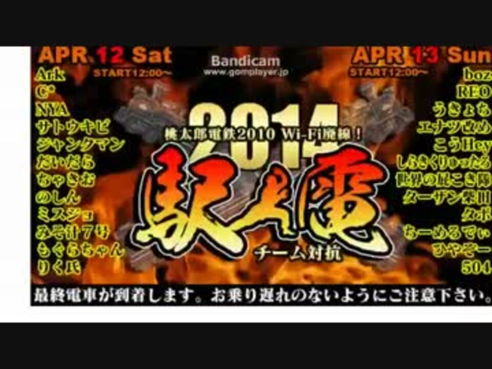 <br /><br />人気ゲーム生主の最後の桃鉄大会が4月12-13日に行われます!<br /><br />___________<br /><br />桃鉄Wi-Fi廃線!チーム対抗 駅伝<br /><a href="https://sites.google.com/site/momotetsuekiden/" target="_blank" rel="noopener nofollow">https://sites.google.com/site/momotetsuekiden/</a><br />日程 4月12日(土)13日(日) 12時~25時<br />___________<br /><br /><br />よっさんの敵視している、雑談生主の麻雀大会は以下です。<br />(今まで皆勤賞のよっさんが、今回は参加できないとのこと)<br />参加者:NER 片桐えりりか 石川のりゆき 横山緑 総師範KSK 獣神さんだぁシバター ピョコタン 銀河流星(応募枠)他<br />___________<br /><br />「第三回 生主ミラクル麻雀王者決定戦」<br /><a href="https://twitter.com/antikubota/status/446349839484211200" target="_blank" rel="noopener nofollow">https://twitter.com/antikubota/status/446349839484211200</a><br />日程4月12日(土)夜<br />___________<br />